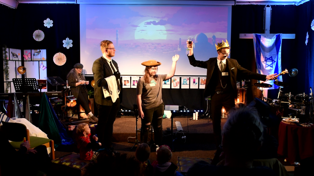 Parallel zum Sonntagsgottesdienst findet unsere Kinderkirche statt, mit Spiel, Spaß und Gottes Wort.